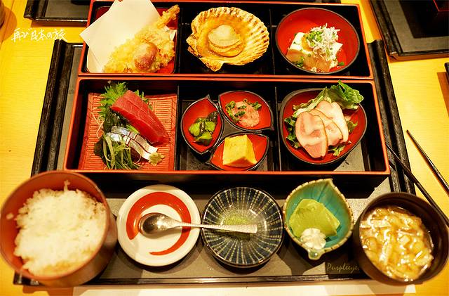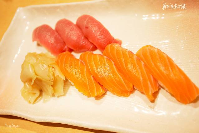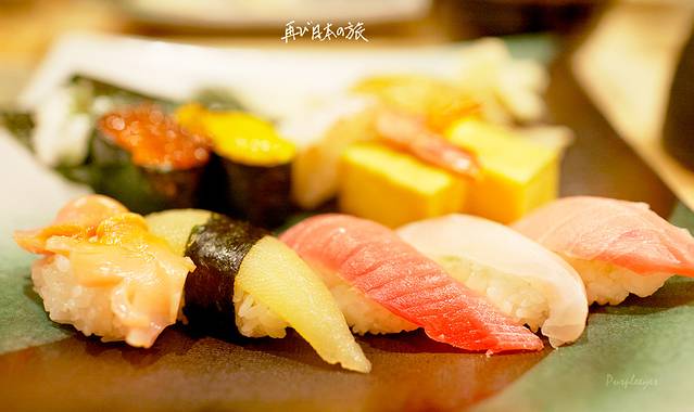 好吧,故事片儿讲完了,内衣店也逛完了,时间也到了中午,该吃午饭啦!这家商场的顶楼就是餐厅区,我们依然找了一家和食料理,准备来点儿寿司。大家点了综合寿司套餐,这里的寿司也挺新鲜的,好吃。