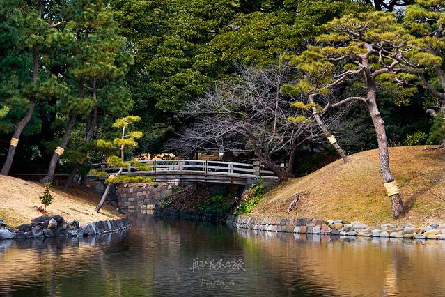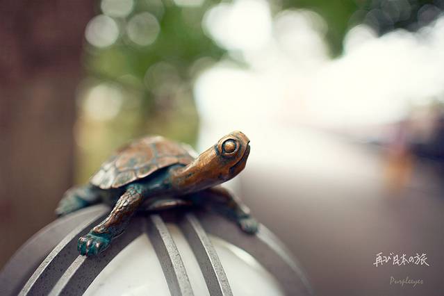 倒是在从东园到西园的通道---一座桥上发现了有趣的东西,桥头两边的小雕塑,龟兔赛跑。日本总是在细节上能给人以惊喜呢!