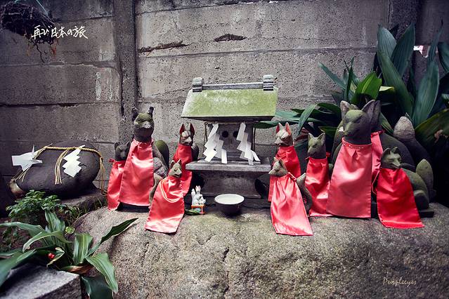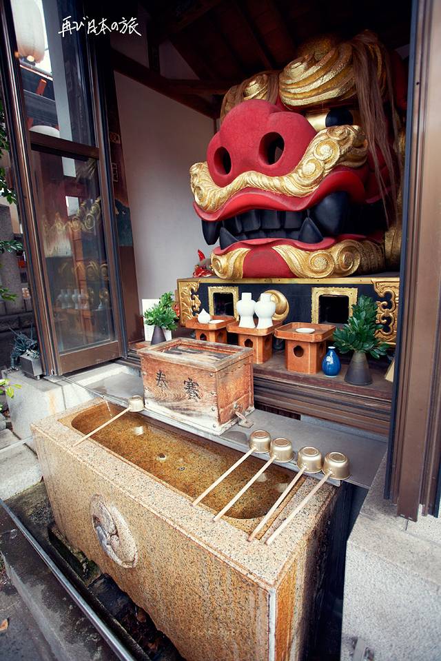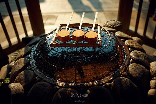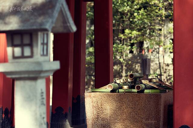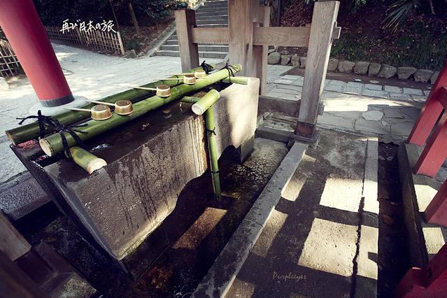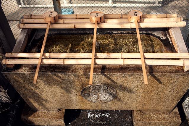 哈哈,既然是神社,于是御手洗就又出现啦,这个神社里的御手洗居然是莲花形状的,不愧是花园神社啊,这个是正在使用中的,甚至还为了能有地方放水舀子特别用铜丝编了一个罩子,不影响美观度和实用度。