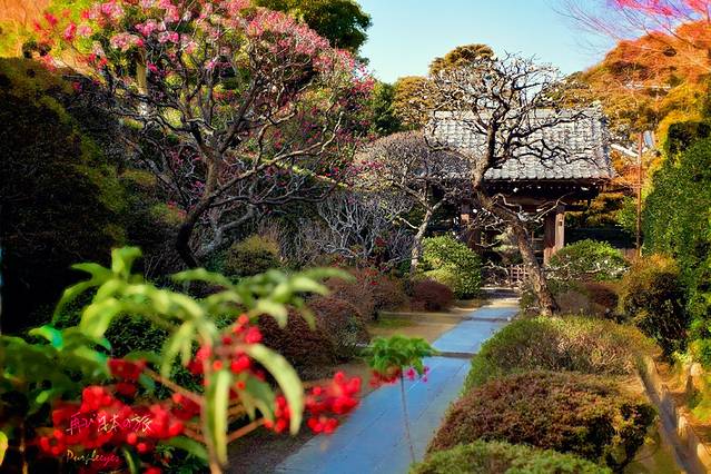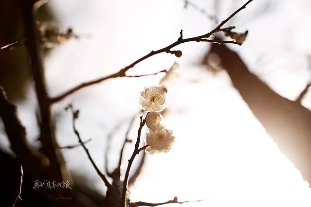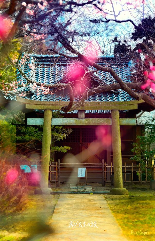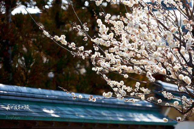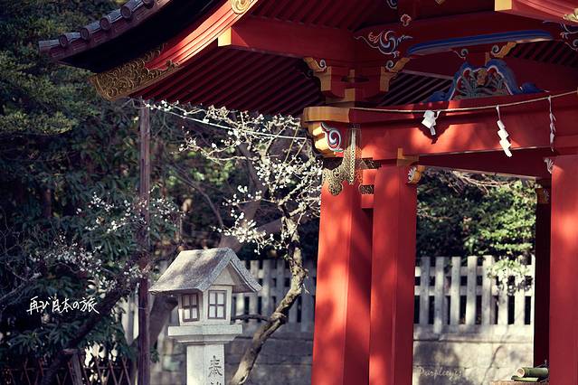 事实证明,我滴感觉果然是对的,那是因为通道尽头的神社院子里种满了梅花,而且都在盛开中!这些大树梅花一看就是有年头的了,比我们之前在牡丹展看到的小盆景那可美多了!而且还有白梅!