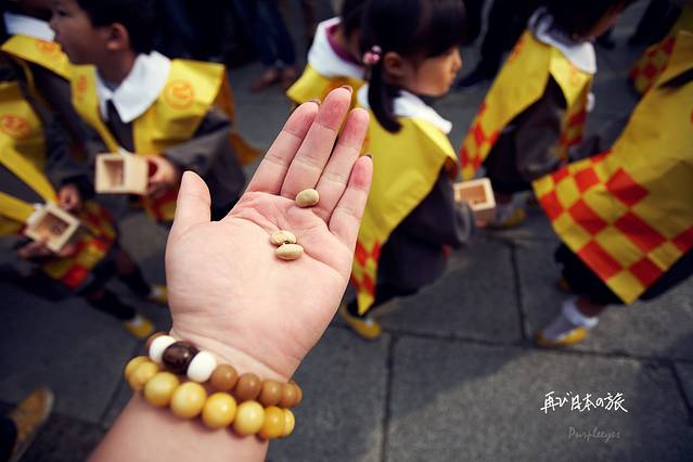 从二手店出来,又逛了几条街之后,我们顺利滴找到了那个和果子店。这回的门口木有摆和果子了,而是摆放上了福豆,原来后天,也就是2月3日,是日本的一个节日,叫做节分,是一个驱鬼节,这个节日需要撒福豆驱鬼。福豆也是可以吃的,所以今天的主打产品就是福豆了。