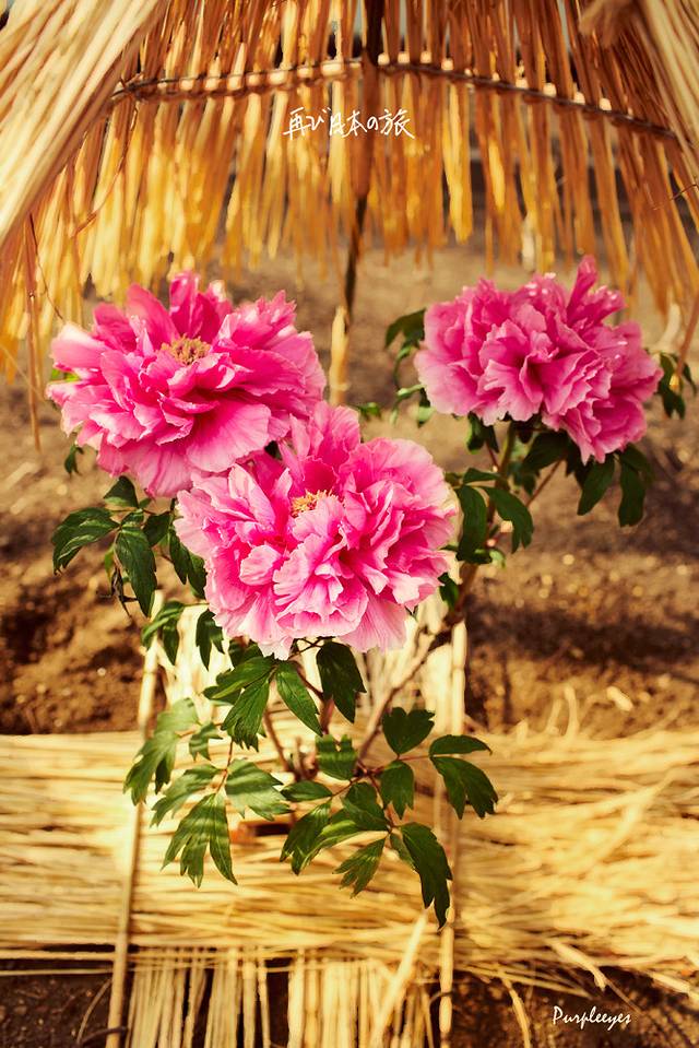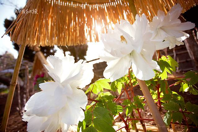 经过了解,我们知道了,春日牡丹展是日本的一个传统画展时期,时间大约在1月中下旬到2月底之间,我想这应该算是早春牡丹展吧。而在4月份还有一个阶段的牡丹展,这就和我们国家牡丹的花期是一致的了。这种牡丹的展出形式也很特别,一般是把一种牡丹放在一个稻草搭建的棚子下面,有点儿像盆栽的意思,不知道四月的牡丹展是不是这样。