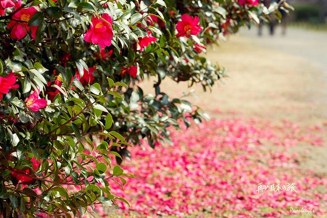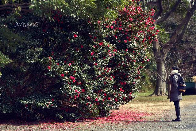浜离恩赐庭院的巨型茶树和满树满地的茶花