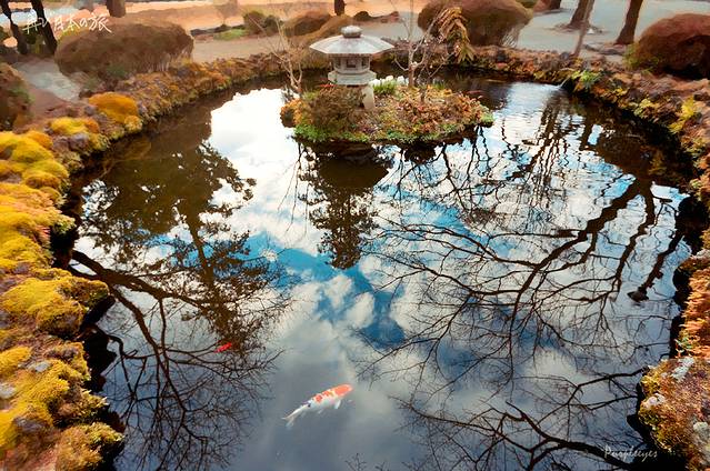 吃过炸鸡之后,我突然发现集市后面是一座大湖,还有神社,于是我们决定索性也逛一下好了,顺便先消化一下炸鸡。