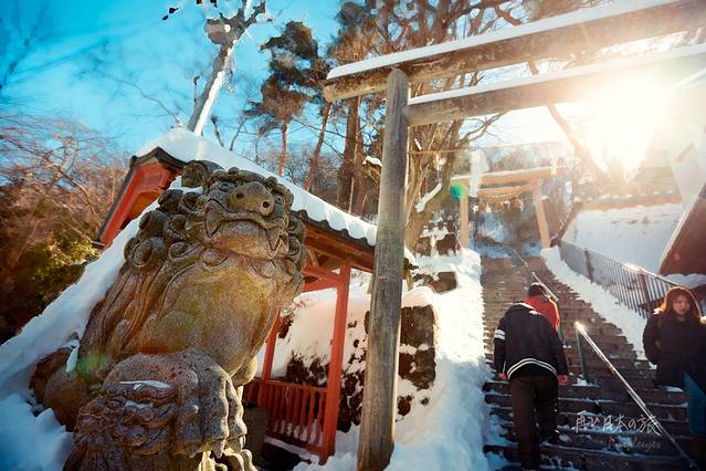 刚看完俩神社,所以我们放弃了这里的神社,其实它貌似是一座很有名的五层塔来的,未来有机会来的童鞋们还是建议参观一下哈。于是我从神社的左边沿着湖溜达了过去,这里的湖边居然还有佛,走到哪儿拜到哪儿~