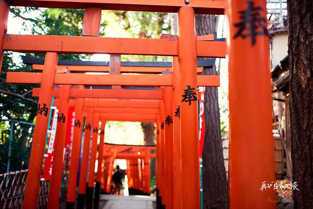 从“药王山坡”下来,我们又访问了旁边的稻荷花园神社,这里有经常在京都游记照片出现的那一排排的红色牌楼,专业名词我就不知了,希望有看游记的大虾可以给予正确名词啦。