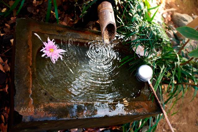 这里的御手洗是相当令人惊艳的,因为水池子里居然飘着一朵鲜亮的菊花!真是太有意境了!