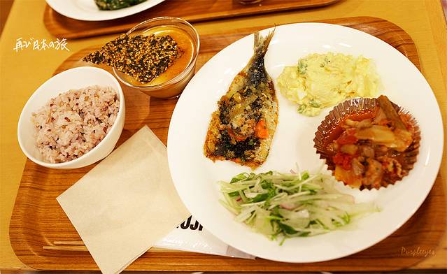 每次出门都暴走的结果就是对路途的熟悉程度绝对不是盖得,我们又沿着记忆+GPS地图,很快顺利滴来到了银座。这时候已经六点多了,折腾了一天,饿得嗷嗷滴,于是就果断滴选择了到达银座后的第一个看上眼的馆子,是一个日式快餐馆儿,卖套餐的。