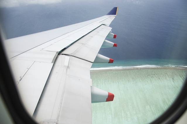 到了到了,超哥比我还激动!可惜新加坡飞马累那趟飞机我坐在了右侧翅膀加上多云的天气,视线不好所以看不到印度洋上那一颗颗美丽的海岛珍珠,不过偶尔也被我发现了一个边缘当时足以美死我家超哥,催着我赶紧拍一个哈哈