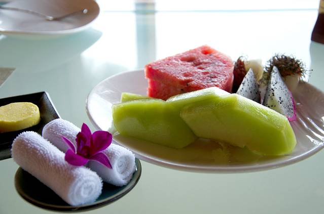 去做spa时走到栈道尽头,旁边一个玻璃小屋就有人出来迎接我啦,带我进去坐坐还给了杯超好喝的饮料,拿了张表格让我填写一下对SPA有哪些要求,比如避开哪些部位啦哪些重点按摩的地方啦...接待的美女很客气还跟我聊聊天,说睫毛弯弯bingbing好漂亮~HoHo,把我给美的吼!