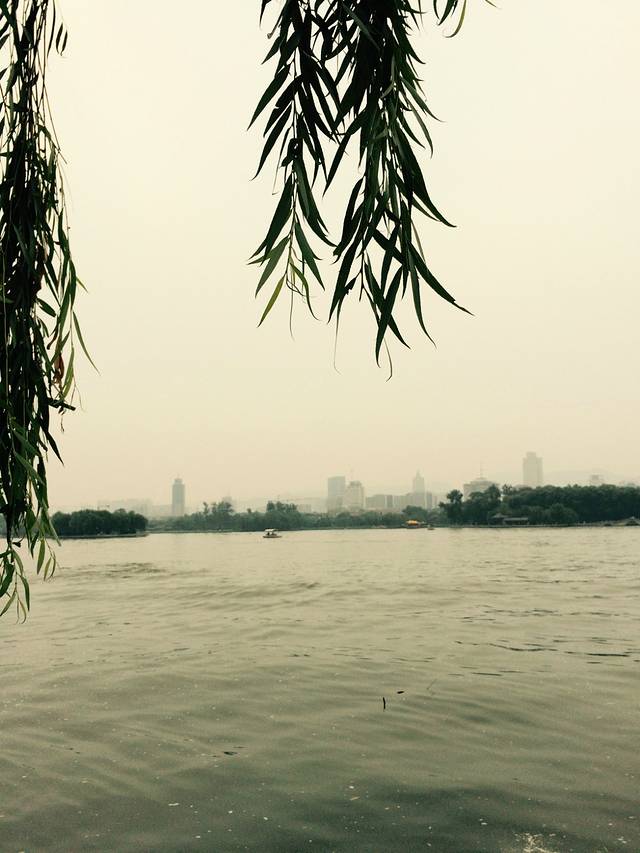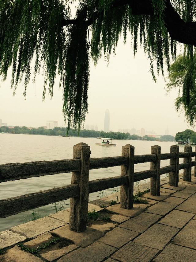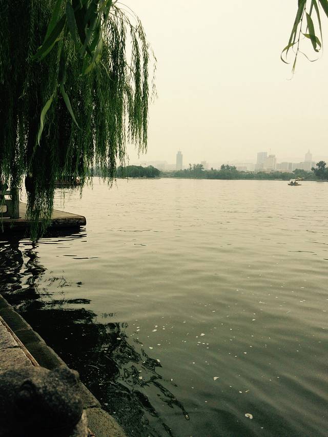 第二天,起的不是很早,决定去看大明湖畔的夏雨荷,大明湖很大,我们没有逛完,因为跟趵突泉差不多,就是个大公园,不过景色确实很美倒是真的。然后继续芙蓉街去吃小吃,臭豆腐,锅贴,因为来了济南还没有吃到正经的济南菜,所以我们决定去宾馆旁找一个饭店尝一尝济南的特色菜,点了一个九转大肠,一个大盘子放了12个特别小的大肠,好坑爹啊,一盘老济南炸肉,一盘麻婆豆腐,唉,那叫一个难吃啊,可能我们没有去特别正宗的店,全是泪啊!因为我们都属于不合适长期走路的,实在是太累了,下午决定回宾馆休息一下,恢复一下体力!下午五点起床去觅食,因为中午的那顿饭对济南的美食着实是没什么兴趣了,就在美团团的自助烤肉。晚饭的时候还下起来小雨,本来晚上要去看喷泉的,但是天公不作美,就逛了逛街。