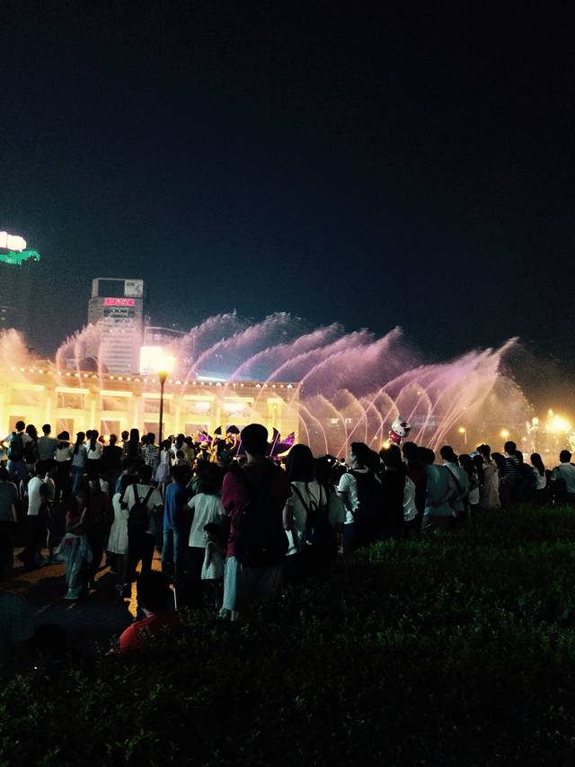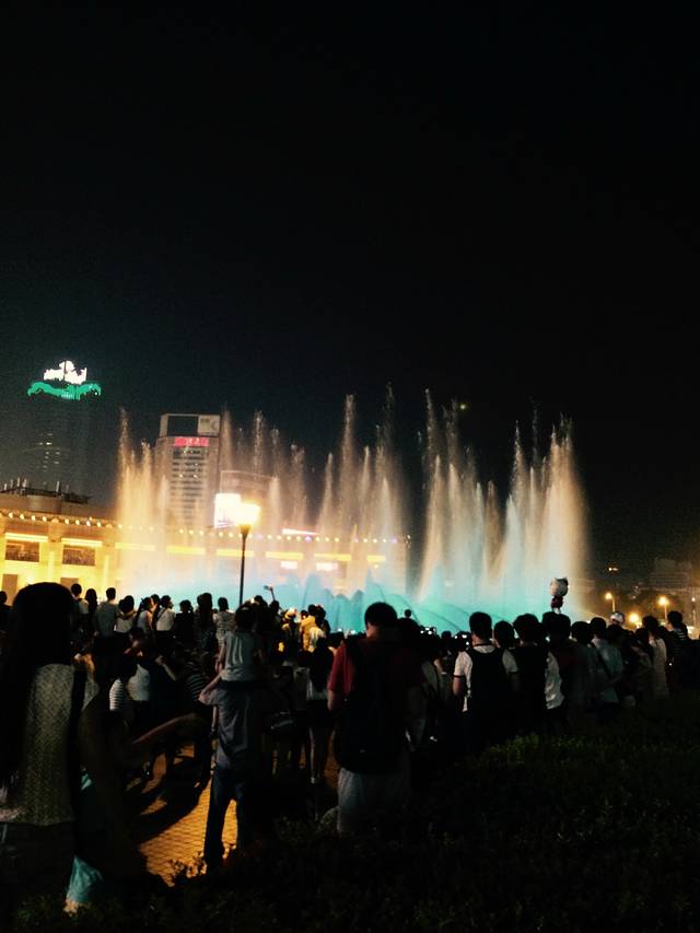 在芙蓉街解决完晚饭,我们步行到了泉城广场。观看了8点的喷泉,不得不说,确实很漂亮。