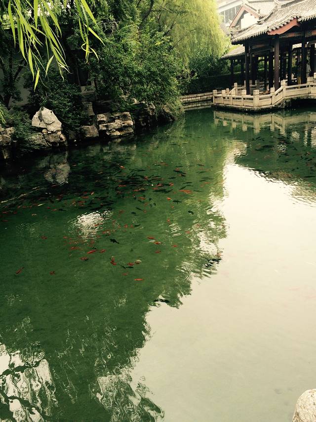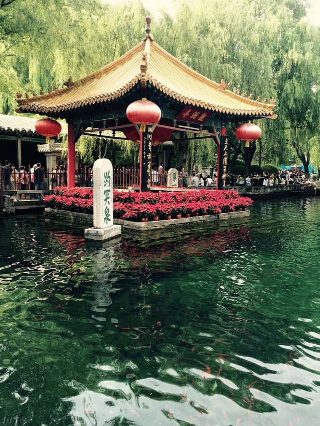 第一天的中午大概12:30到达宾馆,休息片刻之后,出发去趵突泉。宾馆距离趵突泉很近,走路5分钟就到达趵突泉的北门,还好,不是我想象的人山人海,趵突泉清澈见底,里面有好多锦鲤。走在树荫凉处,小风儿一吹,特别的凉快!我们逛到大概四点,有些累,于是决定回宾馆休息会儿再出发。(宾馆离景点近,就是好啊,哈哈哈)