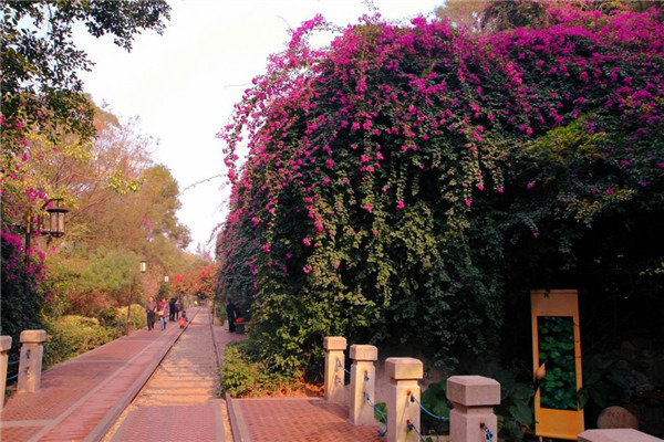 每每来铁路公园,总会惊叹三角梅的花期之长,繁花在秋风中落尽,唯有三角梅一团团、一簇簇,紫红、玫红,依旧生机勃勃地盛开在铁路公园里。