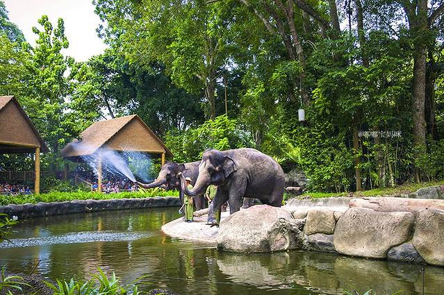 看了象鼻猴、犀鸟、北极熊、红毛猩猩、巨蜥、海狮和大象表演等等~