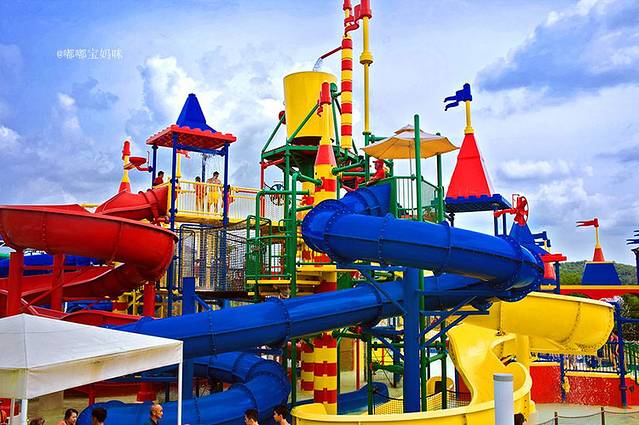 总共包括了20处的水景,70个乐高模型,以及互动平台和200万公升的水,还有各种刺激的滑梯,太爽~