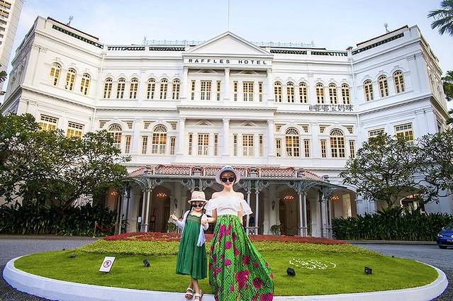 一早打车从圣淘沙硬石到莱佛士酒店,站在莱佛士酒店门口,仿佛穿越到殖民时期的老南洋,