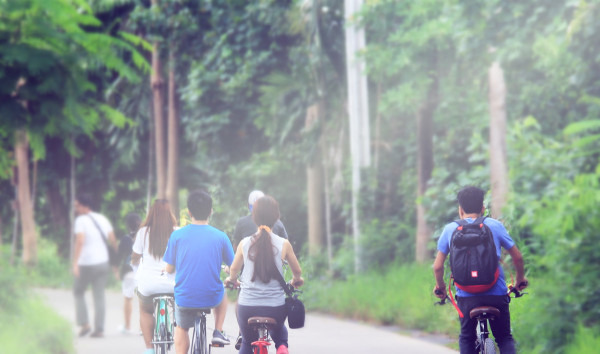 今天计划骑行去树屋酒店,会穿越一片热带雨林。天气还不错,不过应对曼谷不稳定的天气,我还是带了伞。其实树屋还真的挺远的,但是看到照片我就不淡定了必须要去啊,曾经还被评为最具设计的酒店,设计感真的很强。