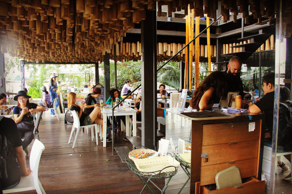 我靠着抱枕躺在木质地板上,才发现这家咖啡厅居然是日式风格,原木色的主体框架,随处可见的日式Zakka杂货,除了偶尔的泰文书籍,提示我还在曼谷,不然真有置身于东京郊外的某咖啡厅的错觉。