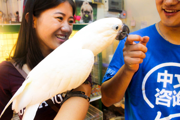 在宠物商店逛着逛着,看到了穿着“中文咨询”T恤的大哥,身边还跟着黑色衣服的软妹子。