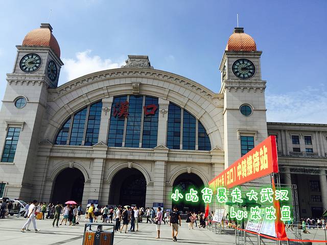 车站始建于1898年,隶属武汉铁路局管辖,现为直属特等站,为武汉三大火车站之一。2008年汉口站大幅改造,2010年完工,外观为欧式风格,近似1903年启用的大智门火车站,两座塔楼守护两侧,站房外部的墙面、窗、檐等,都以线条和几何图形雕塑装饰,建筑面积19.3万平方米,站房总面积8万平方米,可同时容纳6500人候车。