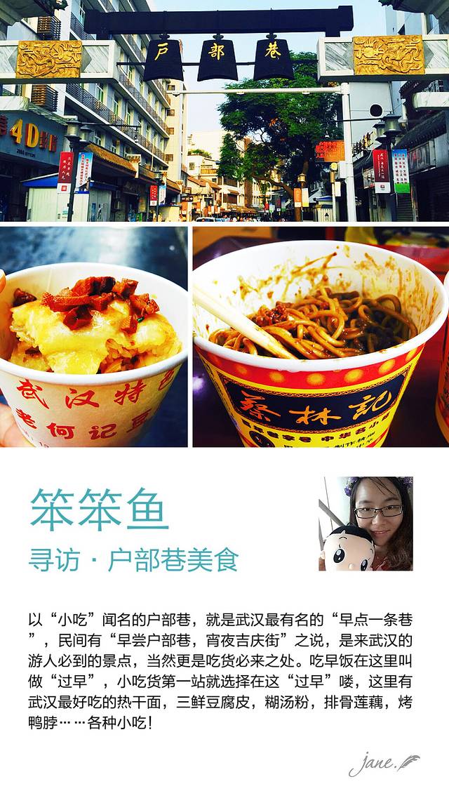 蔡林记的热干面一定要去品尝的,虽然很多外地人说吃不习惯,黑芝麻味道比较重,但对于我来说觉得还蛮不错的。四季美的汤包确实不错,但有点小贵,一笼蟹黄汤包要40大洋。其他就是各种小吃,烤鸭脖,卤猪蹄,三鲜豆腐皮……
