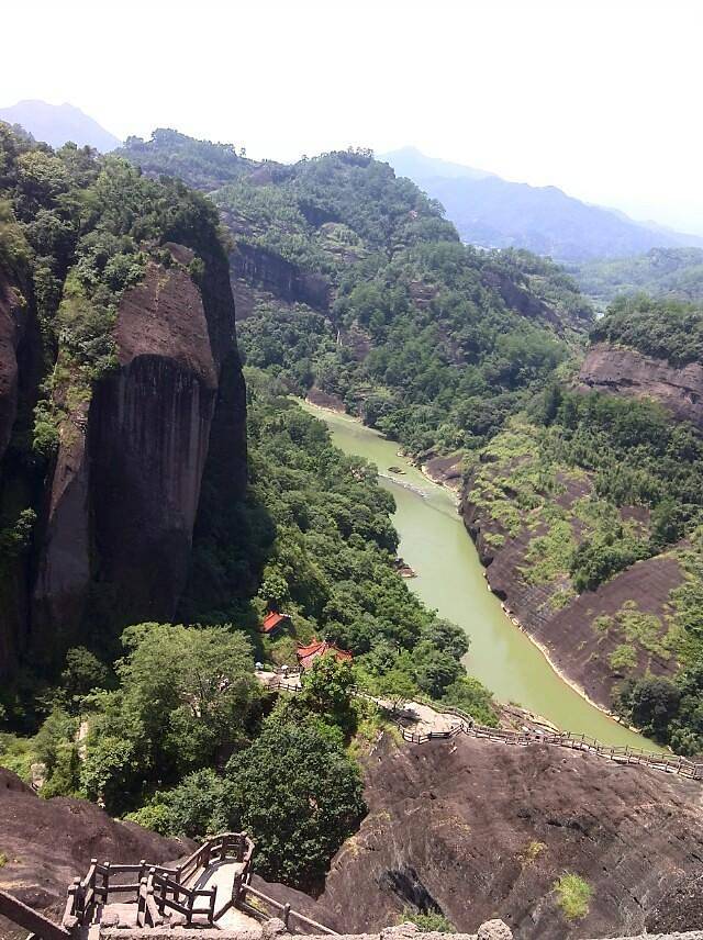 到了南路口检票进去,发现武夷山旅游方面做的真的挺好的,里面已经分好去各个景点的车,你想去哪个景点可以直接坐车过去,快多了,车也不旧,第一天我们是去了一线天,做了一会车,看看车外面美丽的九曲溪,一旁的大山,感觉好激动,下了车,进景区,他会帮你票对应的景区减一下,表示你来过了,然后会让你登记号码,因为他晚上车是五六点就下班了,快下班的时候会打电话叫你出来,送你回到景区门口,然后我们就逛了一线天,之后穿到了虎啸岩,就下来了,山下还有脚夫一百一个人,抬轿子抬你上去呢!感觉一线天不错,毕竟没见过之前,虎啸岩一般吧,然后就下山了,因为时间紧,快晚上了,虎啸岩有些地方没去,听说有一段地方挺险的,爬着很刺激。坐车回到景区门口,然后莫名其妙上了一辆不知道什么车,好像是旅游车,到了印象大红袍会场的附近,就吃了饭直接去看印象大红袍了,这个票也可以去哪儿预定,更便宜,最好提前一天预定,不然可能没有了,一定记得不能迟到,迟到不让进的,表演还不错,没看过这类型的一定去看一看,下面发照片说话。回去的话有公交,或者摩的也很便宜。不建议一个人坐。