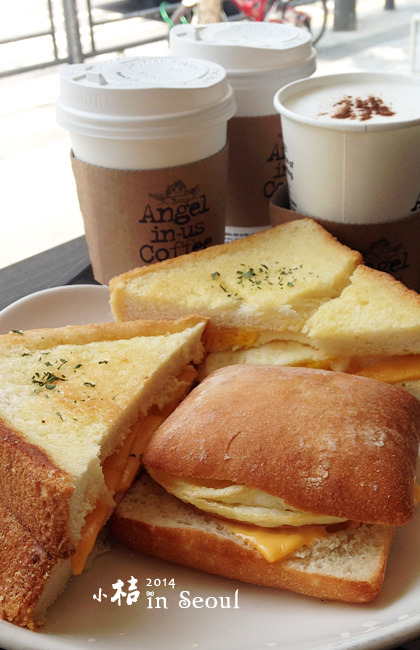 店内有售卖杯子,价位和星爸爸差不多,但之前已经买过一个首尔城市杯了,实在不想再背个杯子回去。但是我把套在咖啡上的纸套都收走了...