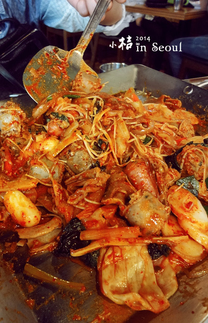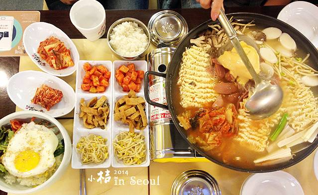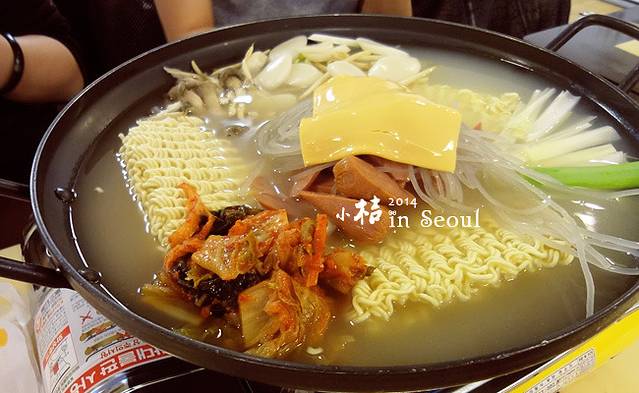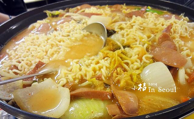 部队锅只是个统称,很多餐馆都有做。最早听说这个名字,是在网上浏览韩国游记时,看到鸟叔有代言一家部队锅,觉得名字很酷,就记住了。这家显然不是,但遇到就是缘分,而且也都差不多,就试试它吧!