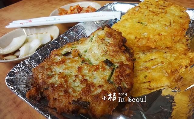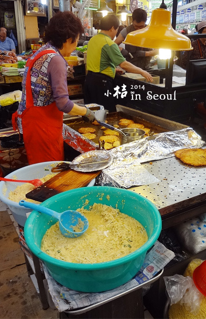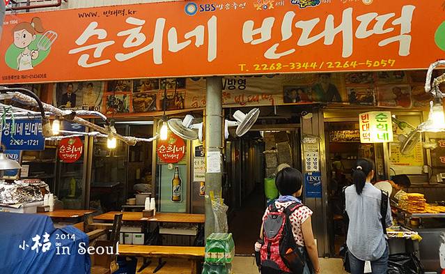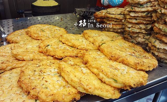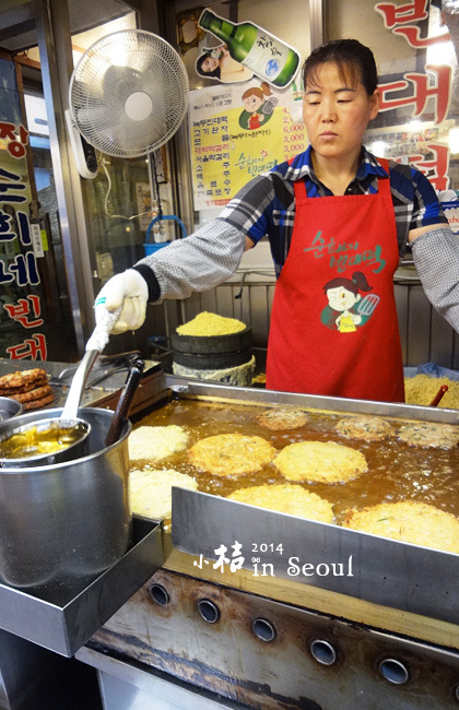 来这里,不得不试试“绿豆煎饼”,实在是太多家在卖了,走几步就看到一摊。 我们来的这家是“顺姬家绿豆煎饼”,有店面,生意不错。门口炸饼的大妈是中国人,招待我们的大妈也是中国人,阿姨说“我们都是中国人”,不过老板是韩国人,最后负责收钱的是韩国小妹。