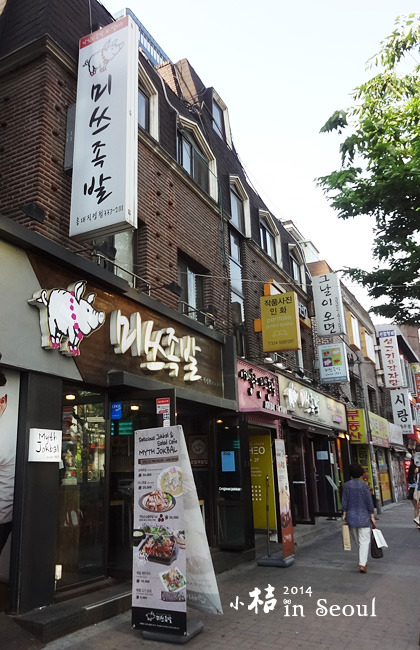 在首尔的最后一餐,来弘大的这家myth猪蹄。离弘大入口站9号口不远,但我们赶时间,就从仁寺洞直接打车过来。