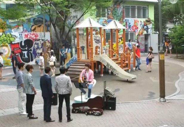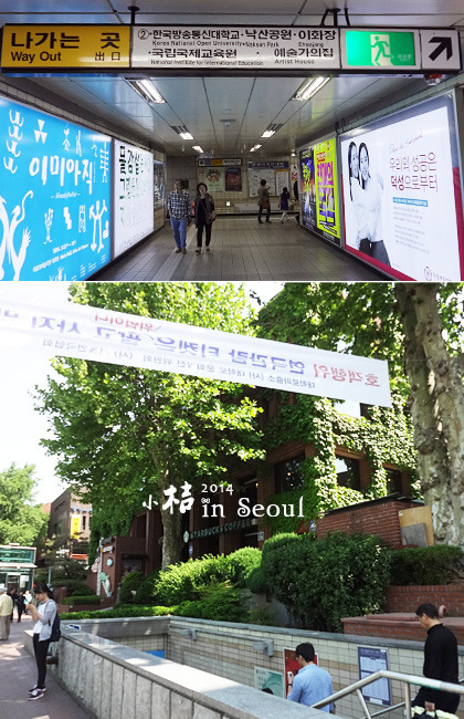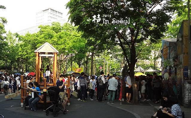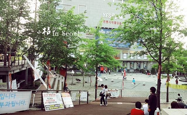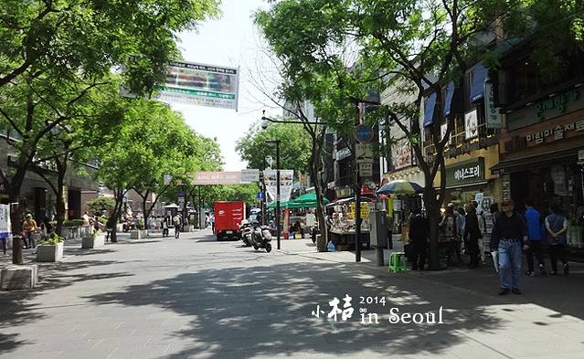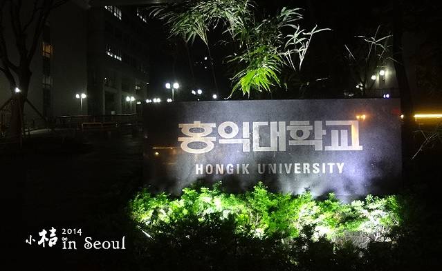 白天的弘大校门口~比起我们国内的大学校门,弘大看起来比较一般。