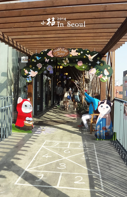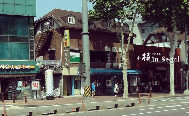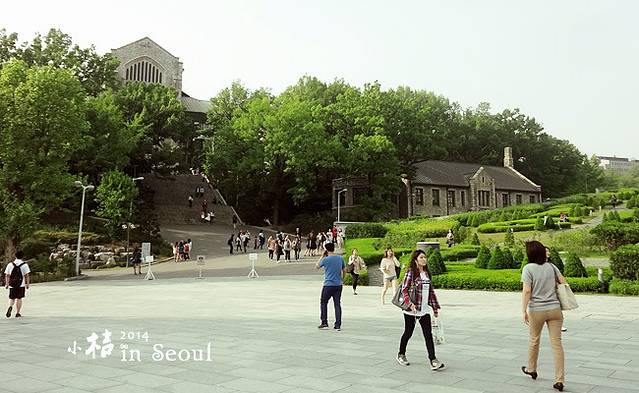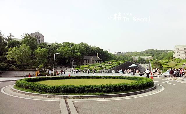 吃完烤鳗出来是3点多,走到梨大附近的这个广场,已经过去1小时。然后在这条远远可以望见梨大的小路上,又给我们晃悠了至少半个小时。没办法,沿途各种小店逛。