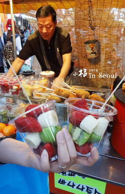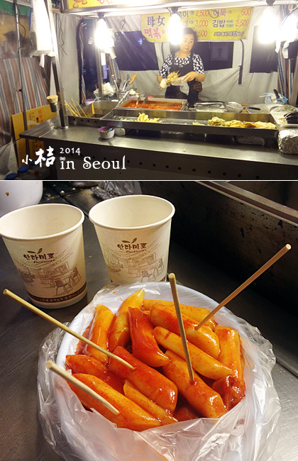 走着走着,路边的年糕摊摆了很多出来,韩剧情节浮现眼前,再饱也必须感受一下。