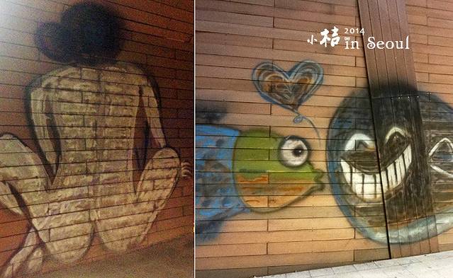 约45分钟车程,抵达弘大入口站,2号出口。然后,蛇头张跟着google地图,我们跟着蛇头张,在一个酒吧门口有了第一次问路,又在一家便利店进行第二次问路。掀桌!不是在附近吗?也太难找了!
