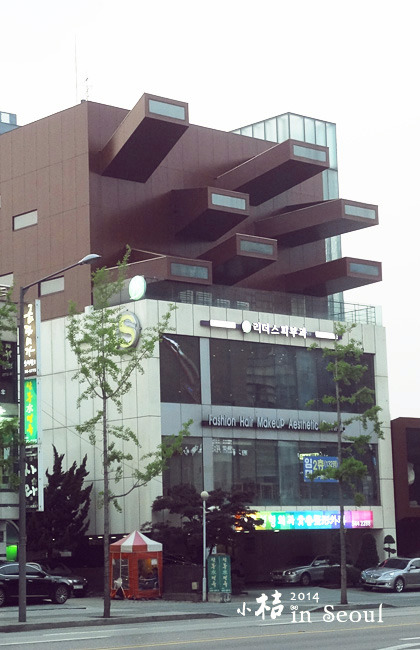 首尔很多建筑都颇有设计感,且不说是否符合你的审美。这栋楼乍一看还以为是脚手架围了一圈呢...人家真不是!