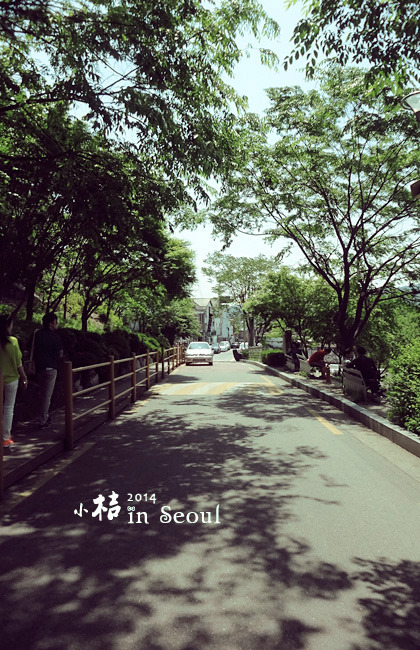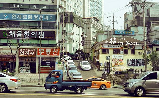 新村到梨大不远,用走的。 看到图中那个坡么?在首尔极其常见,一堆车停坡上~