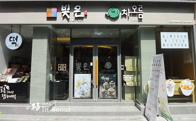 韩国最大的食品连锁企业“BONIF”旗下的时尚茶饮品牌咖啡厅,主打“健康”牌,除了传统茶和韩方茶,还出售奶茶、咖啡及甜点。仁寺洞街店还与时尚年糕品牌“bizeun”合作,所以店名是两个名字并排的。