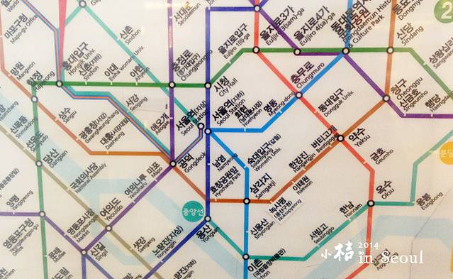 地铁:刷T-Money卡,进站扣钱,每次好像大都是1050韩币。方向一定要弄清楚再上车,坐错方向就很浪费时间。