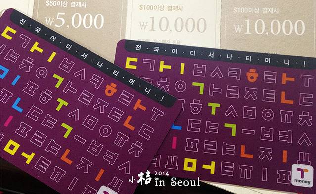 T-MONEY卡:类似HK的八达通、台湾的悠游卡。我是向朋友借的。如果自己办,就是在韩国的连锁便利店,貌似2500-3000韩币不等,可用来乘坐公交地铁,也可在便利店买东西和充值,但不要充太多,好像不能退。我们第一次先充10000韩币,之后每次刷卡都留意下余额,再根据情况充值。这五六天下来,只有坐地铁用了它,差不多花了16000左右。
