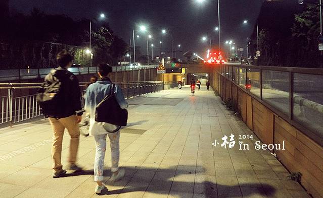 准备打道回府,可谷歌地图指引的地铁站还在很远,而且我们还在桥下的步行的汉江公园,打的不现实,路不熟,走半天都还在步行道上,身边不时擦过骑行族和锻炼身体的市民。(韩国貌似很多人爱骑车。