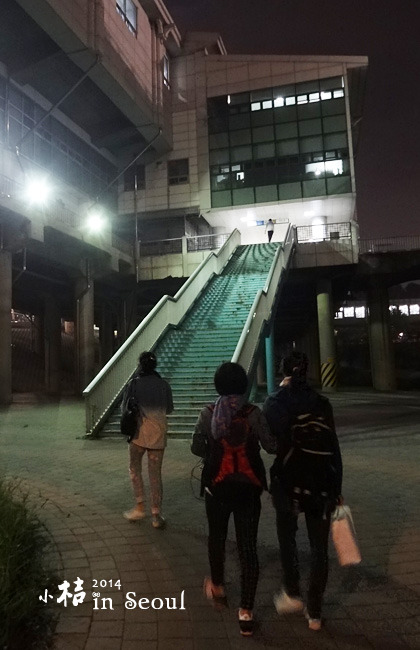 首尔时间的半夜12点,4个人拖着行李箱喀拉喀拉滴在安静的小街小巷里找住所......