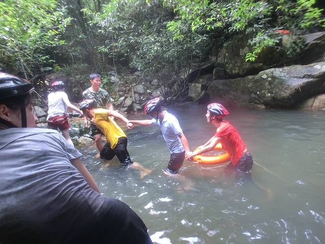 一路笑着闹着呀诺达就到了,行程大概一个半小时吧。也是因为和导游聊得比较开心,所以下车前导游推荐我们玩的呀诺达唯一的一个项目“踏步戏水”,车上除了年纪太长玩不了的基本都参加了。项目一人98元。