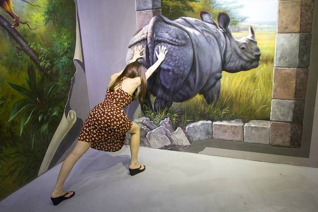 三亚第三站,有点误打误撞的选择了3D奇幻艺术体验馆。头天下午从呀诺达回来,路边随便抓了个发传单滴咨询明天的行程。不想抓了个以前是导游的老板娘,老公经营海上项目的,但她告诉了我们一个重大悲惨的信息,明天开始海南要大范围的下暴雨了,所以不是很适合海岛行,比较适合去森林公园云云......我当时真是五雷轰顶啊,我的分界洲岛还没去呢!!再说了,这狂风暴雨的去哪玩都不适合啊~~~~