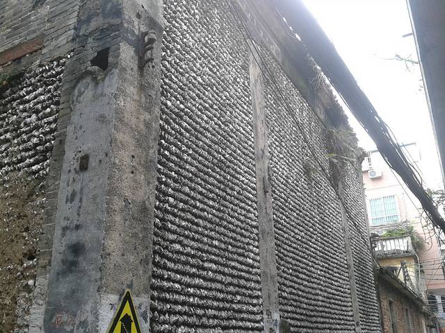 在逛街的同时,我也看到了一些挺值得告诉大家的东西。在番禺,有种房子,叫做蚝壳屋,据说有几百年的历史了呢,好多都是危楼,而且剩下的只有一两间了,我开始的时候还以为是咸鱼。。。排列的很整齐噢。