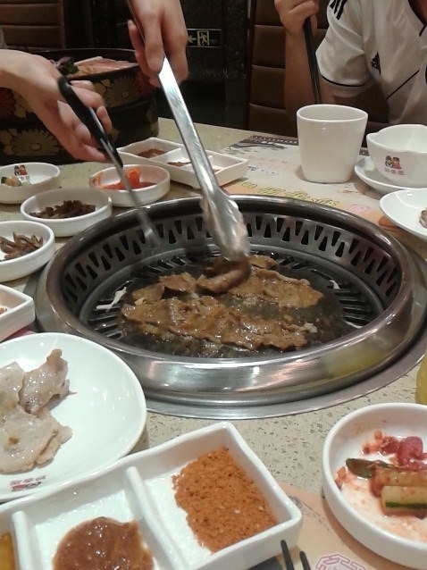 晚上还是在奥园广场解决晚餐的,这儿的东西很不错啊,味道很好,晚上吃的那间是韩国料理,叫做妙香居韩国料理(番禺店),很有特色,当然啦,韩国料理还是主打烧肉,所以我们点了个烧肉套餐,一百多块左右吧,东西还挺多的。对了,这店里面还是有单点的东西的,味道也是赞赞的哦。
