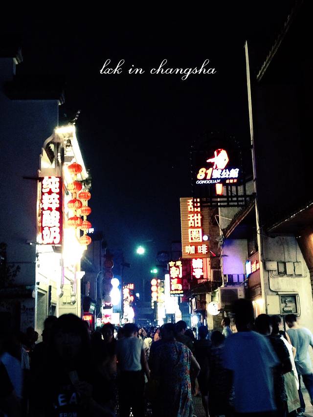 下午4点多到达长沙黄花国际机场后就可以去坐机场大巴到市中心,我们先找到酒店,住的是7天连锁酒店的迎宾路口店,位于袁家岭地铁站和迎宾路口地铁站之间,交通很方便,服务员都很好,一住就是三天。把行李放在酒店,然后就坐地铁去找吃的了。坡子街,太平老街,三王街都是连在一起的几条街,人很多,整条路两边都是卖吃的,让人眼花缭乱。这都是在五一广场商圈,坐地铁在五一广场站就可以了。