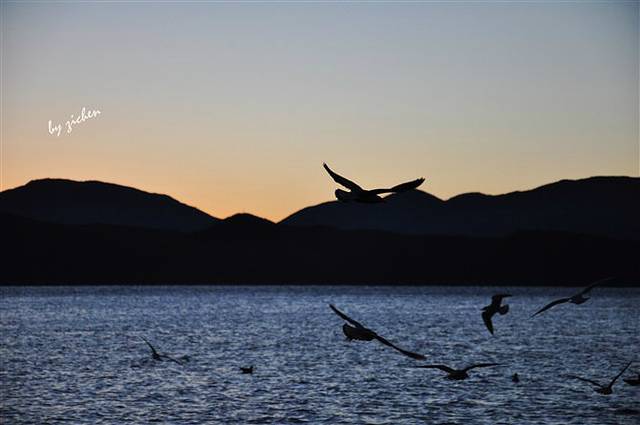 6:40在码头集合看日出,看海鸥,带了饼干没有面包。