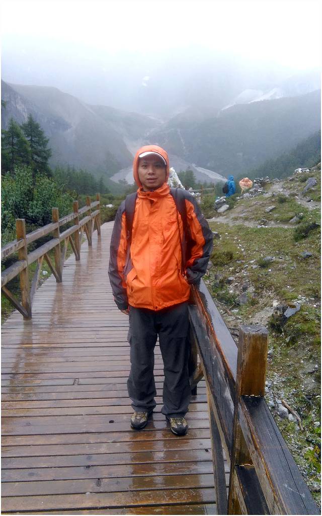 上山的路上突然下起了雨。。。还好我有冲锋衣!