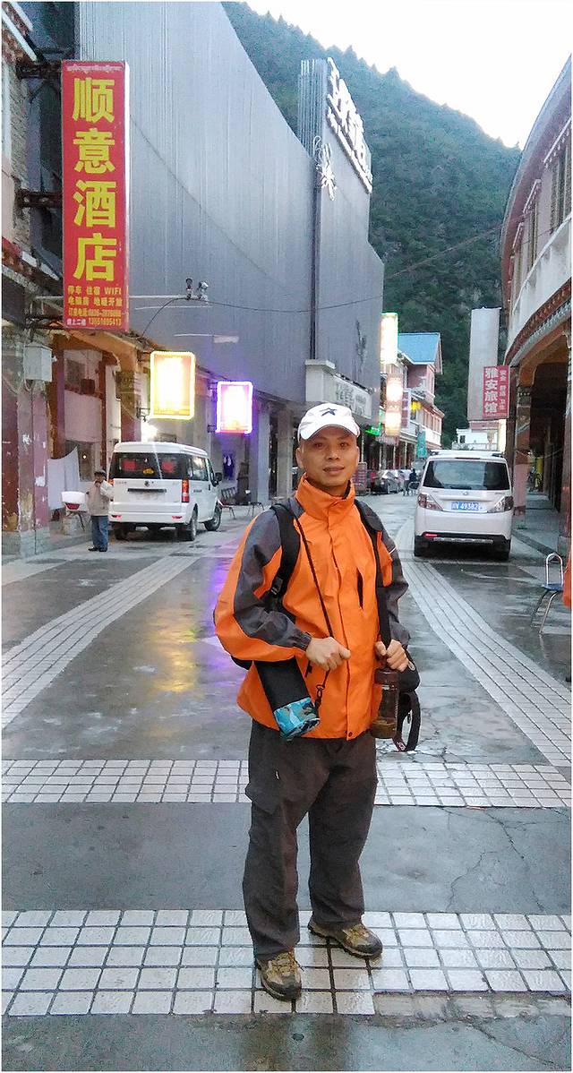 吃过早餐后,阿军哥接上我和另外两个驴友阿辉、阿颖。军哥是昨天在稻城河游玩时认识的一个朋友,人长得帅不说,超好人!碰巧他也是一个人开车回成都,顺带也把我们给带上。在这里要谢谢军哥,除了免除我们坐大巴车的劳苦,还带我领略了318国道川藏线上的无限风光!也让我体会了在海拔四千多米的青藏高原上开霸道的感觉。运气真好,路上军哥除了带我们品尝了地道的美食外,我们还看到了高原湖泊“红海子“、四川第一锋”贡嘎雪山“(海拔7,556米)。